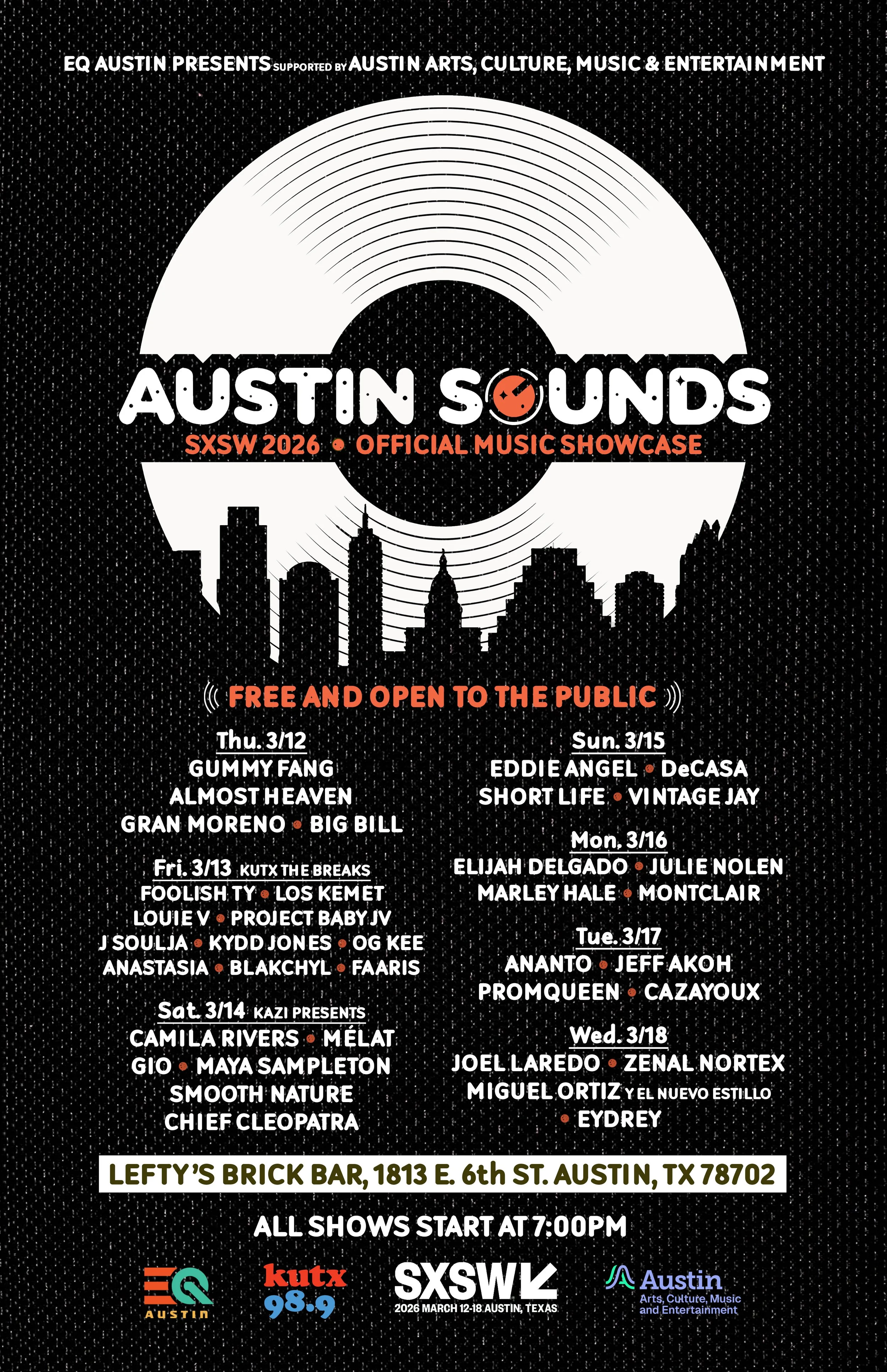 EQ AUSTIN is a non-profit organization whose mission is to stimulate cultural representation and foster economic prosperity in the music and creative sector through an equity, diversity, and inclusion lens.